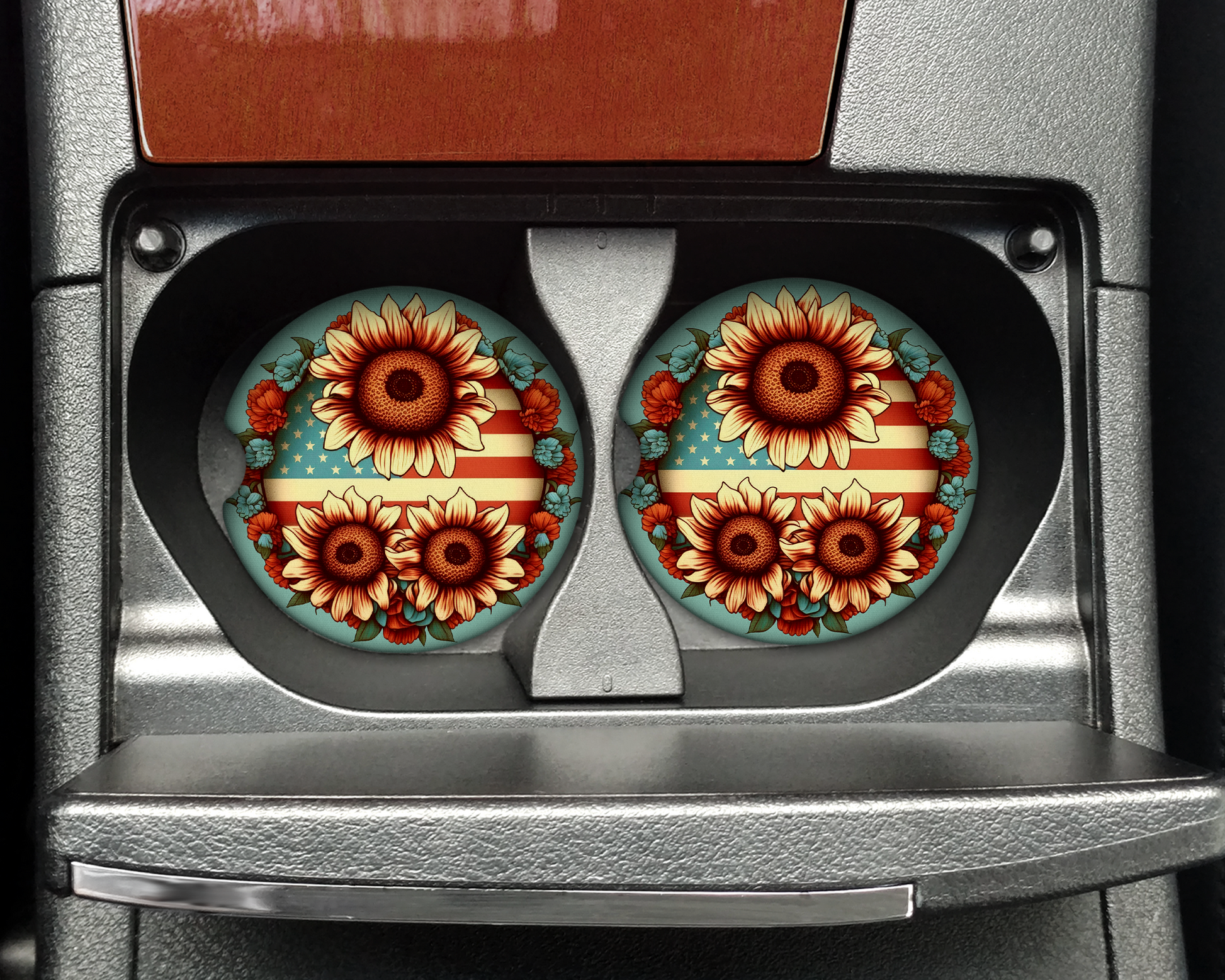 Custom printed car coasters. These absorbent coasters soak up leaks and spills while adding a little fun to your car or table. You will receive a SET of 2 coasters.