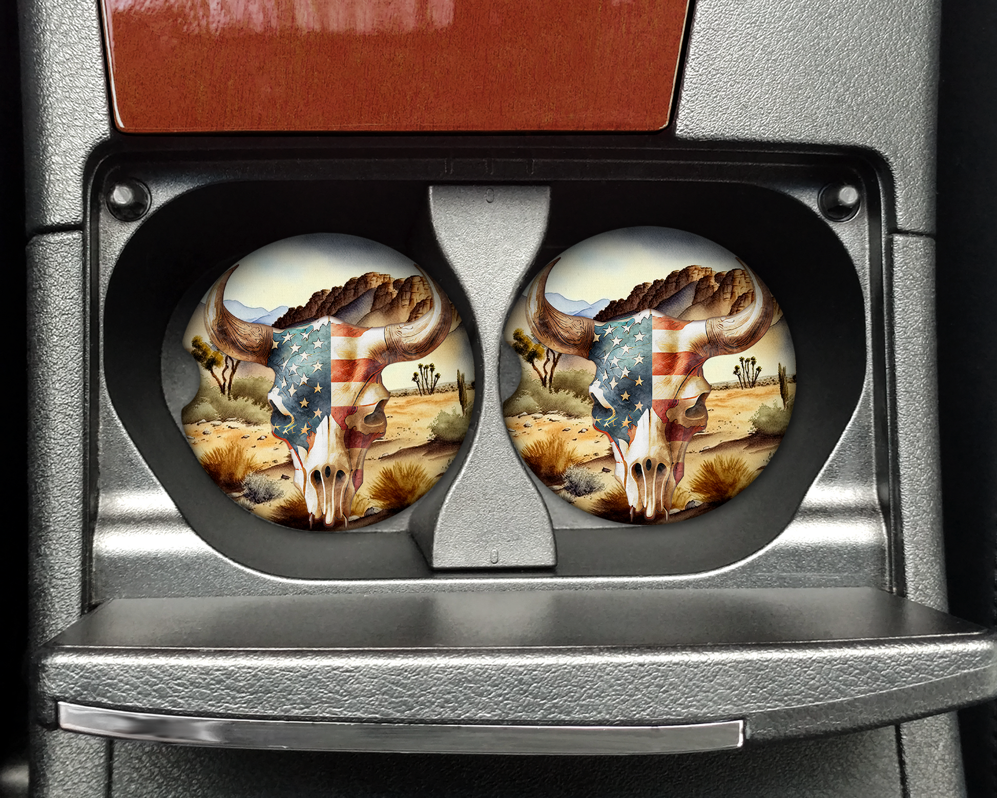 Bull Horns Patriotic Car Coaster