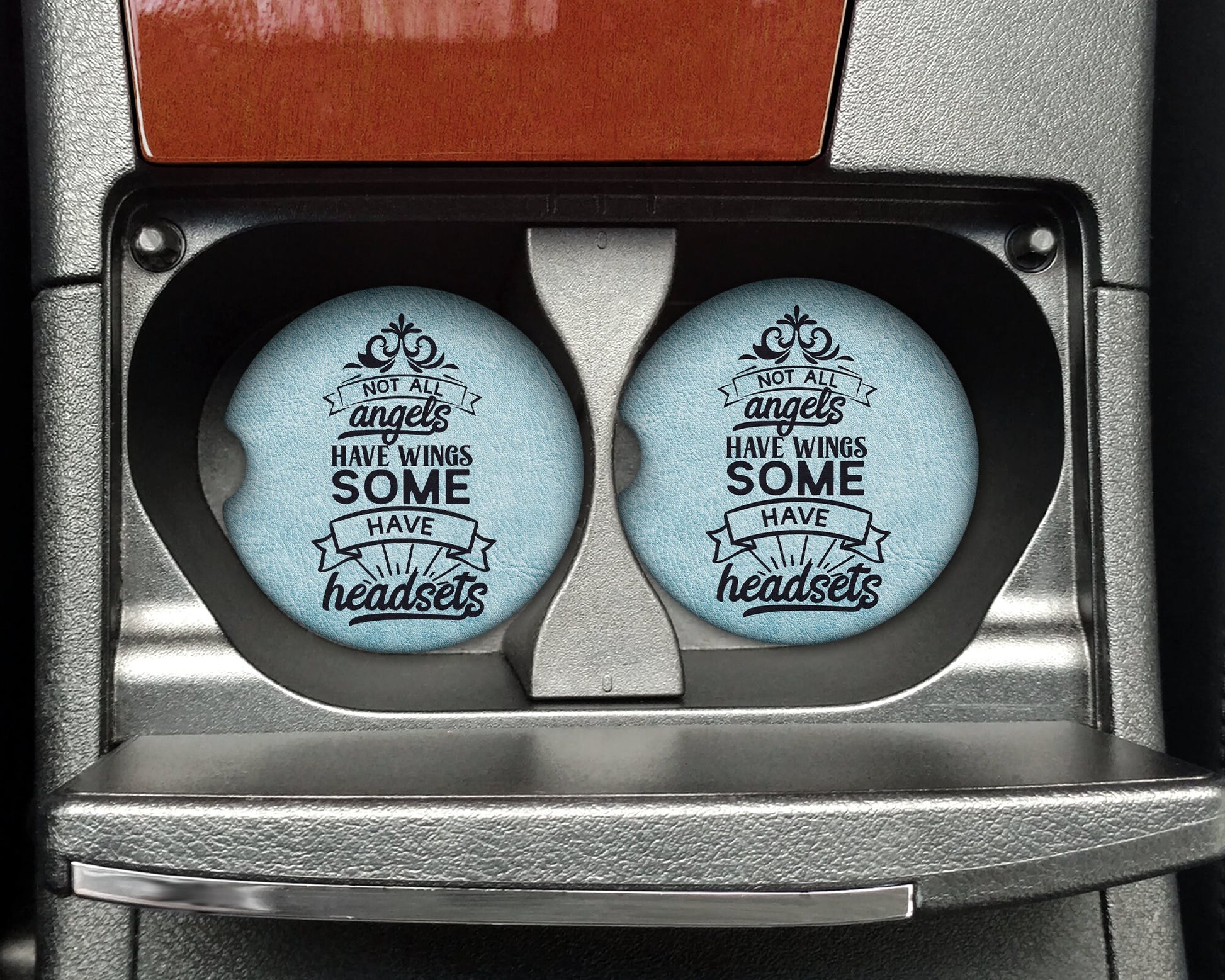 Custom printed car coasters. These absorbent coasters soak up leaks and spills while adding a little fun to your car or table. You will receive a SET of 2 coasters.
