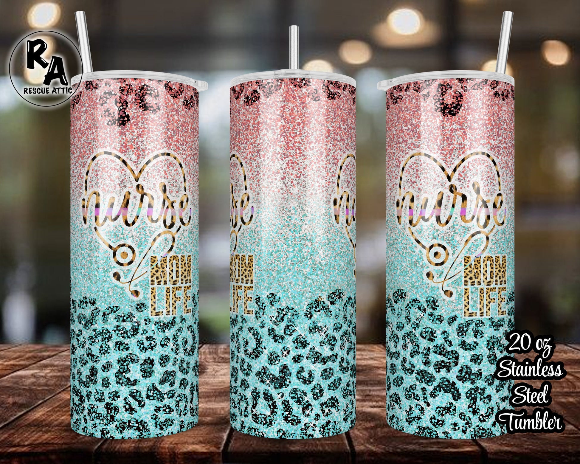 Faux Glitter Nurse Mom Life Stethoscope 20oz Skinny Tumbler