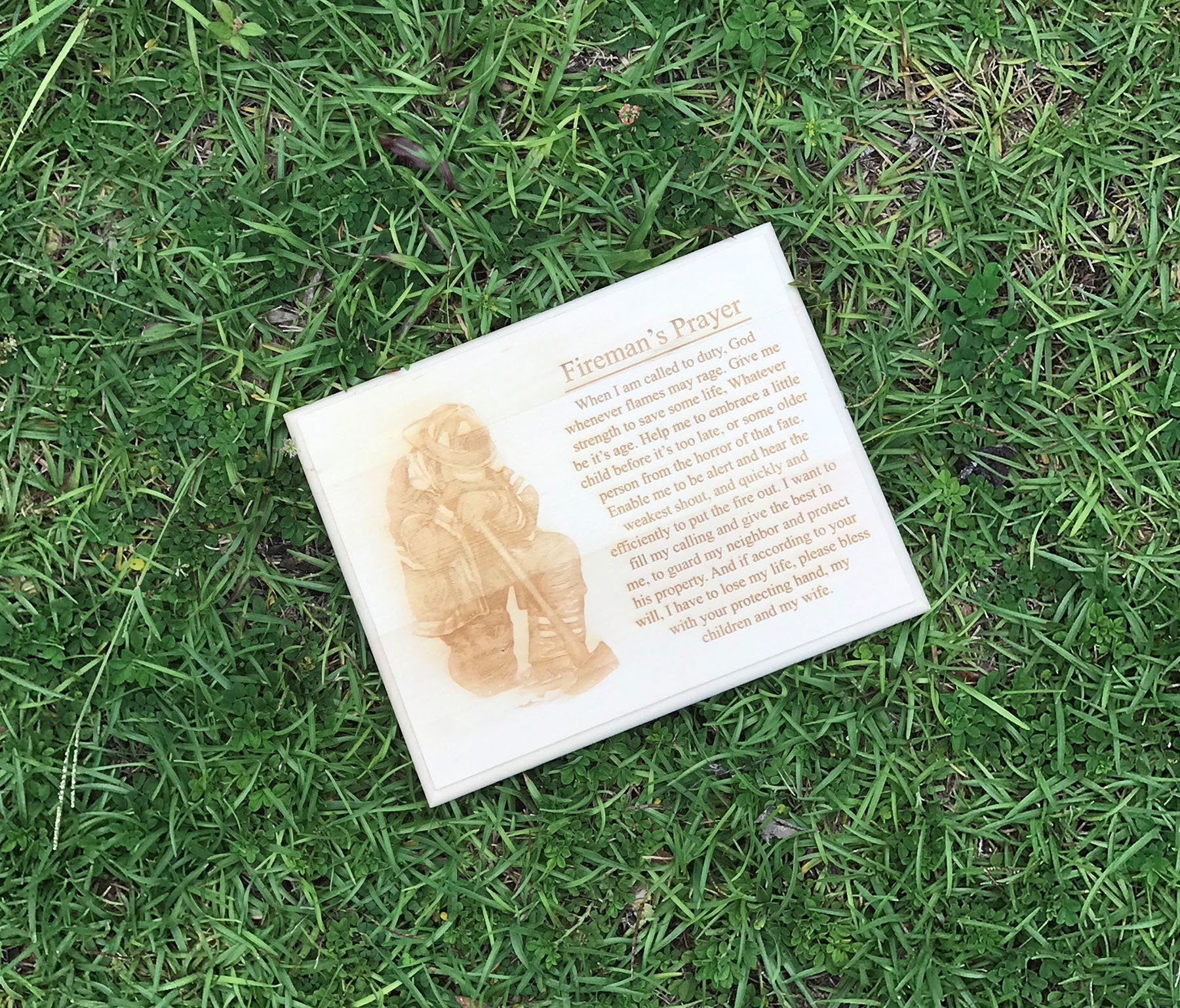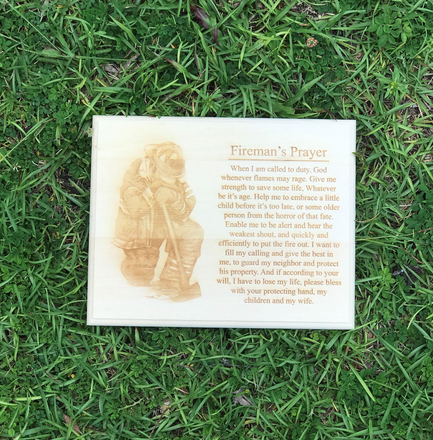 "When I am called to duty, God whenever flame may rage, Give me strength to save some life, Whatever be it's age. Help me to embrace a little child before it's too late, or some older person from the horror of that fate. Enable me to be alert and hear the weakest shout, and quickly and efficiently to put the fire out. I want to fill my calling and give the best in me, to guard my neighbor and protect his property. And if according to your will, in my duty I should fall, please bless with your protecting hand, my children and my wife."
