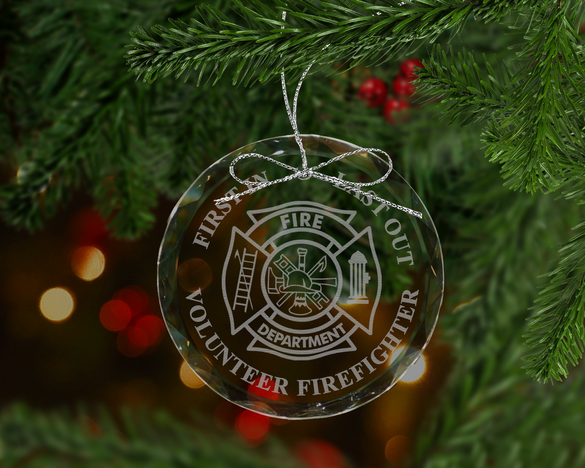 First In Last Out Volunteer Firefighter Crystal Ornament