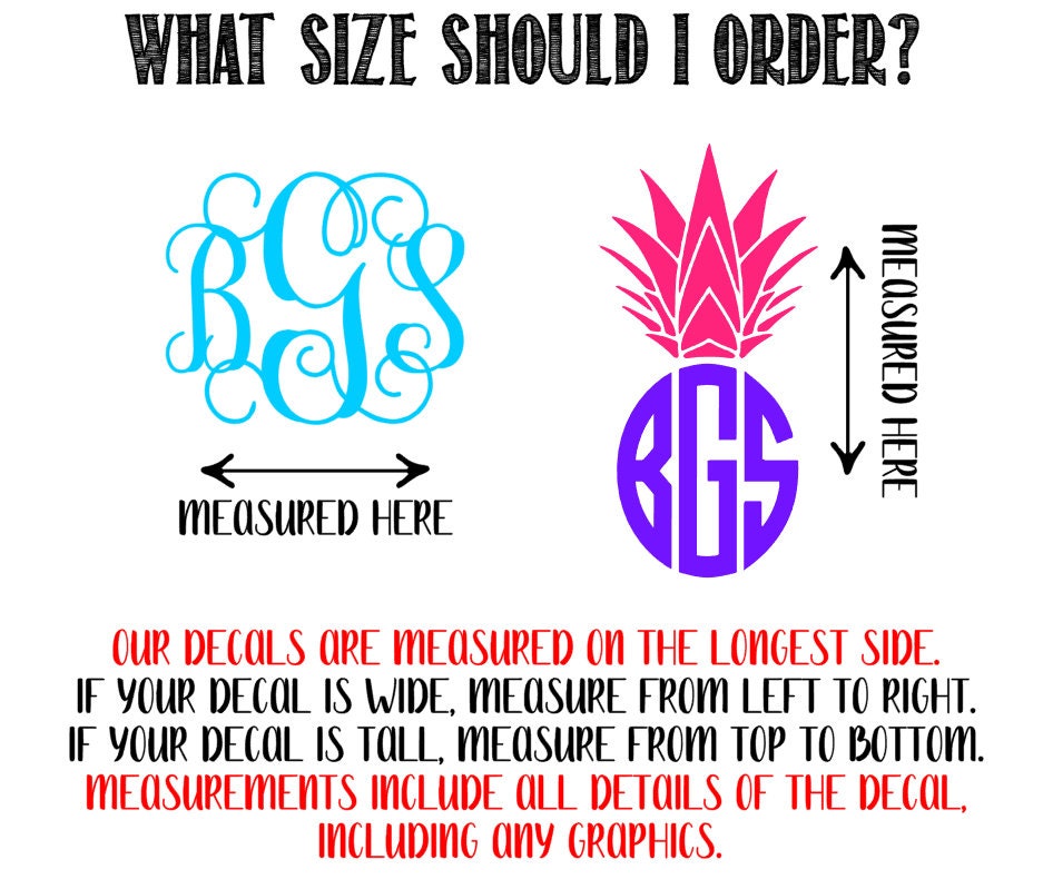 The measurements listed are for the longest side of the decal. Looking for a larger size? Just send us a message and we can get it done for you!