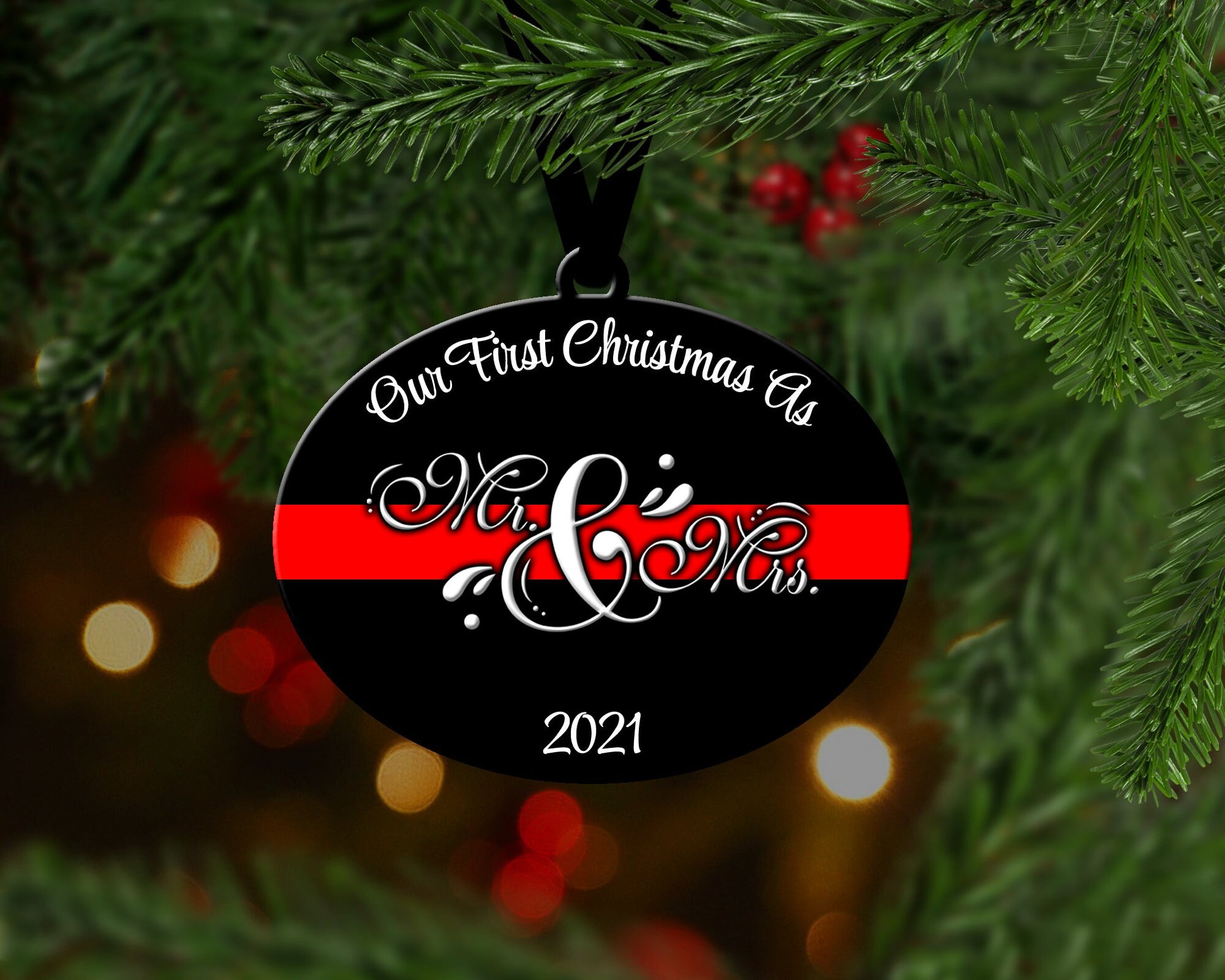 New Couple Thin Red Line Christmas Ornament