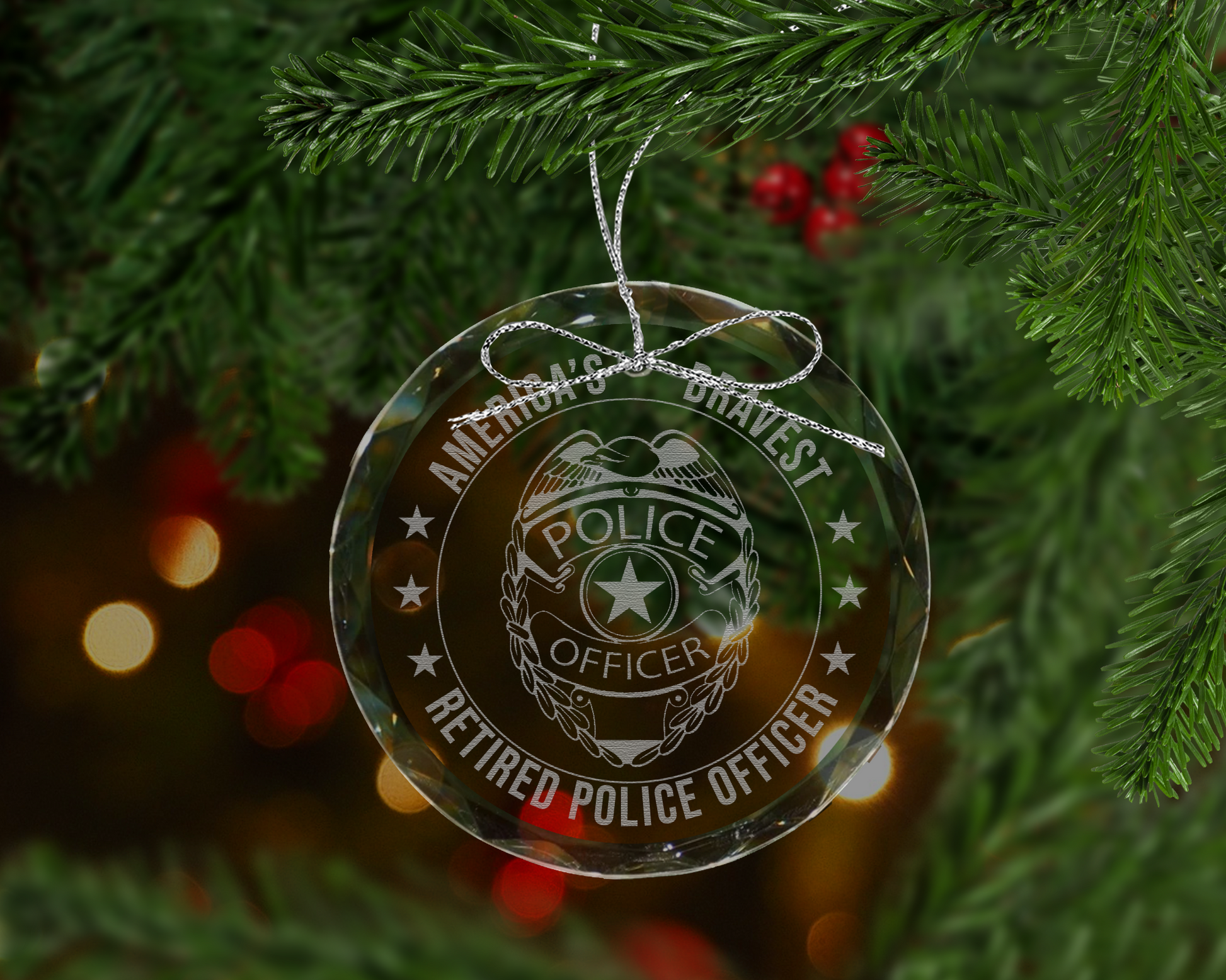 Retired Police Officer Crystal Ornament