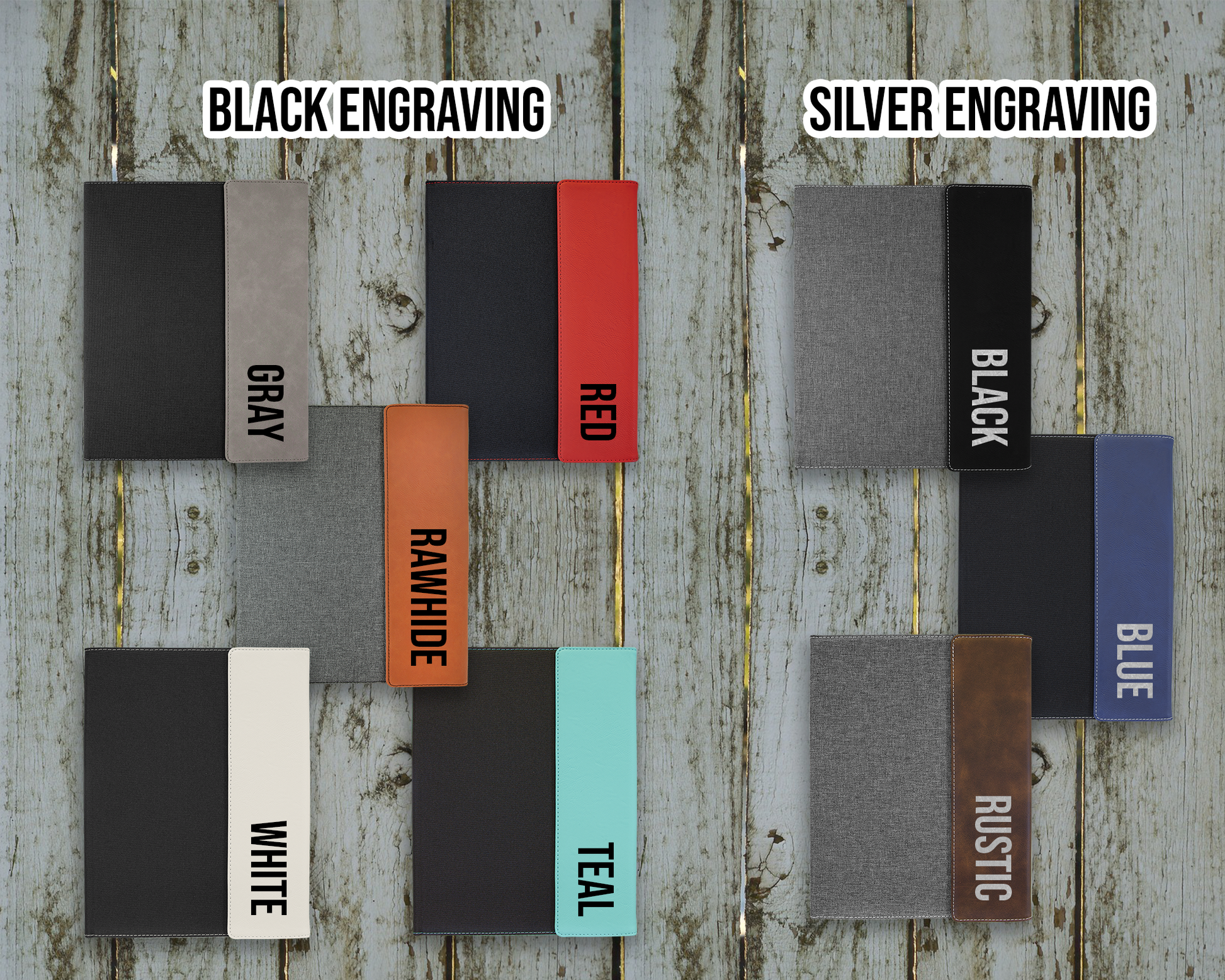 High quality laser engraved faux leather pocket notebooks make an excellent gift for any occasion. They offer the look and feel of genuine leather at a fraction of the price. This richly textured, synthetic material resists water spots, cleans easily, and is durable enough for the rigors of daily use.