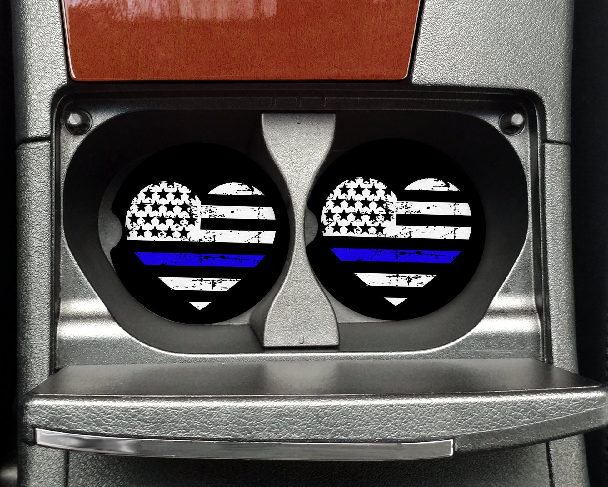 Thin Blue Line Heart Flag Distressed Car Coaster