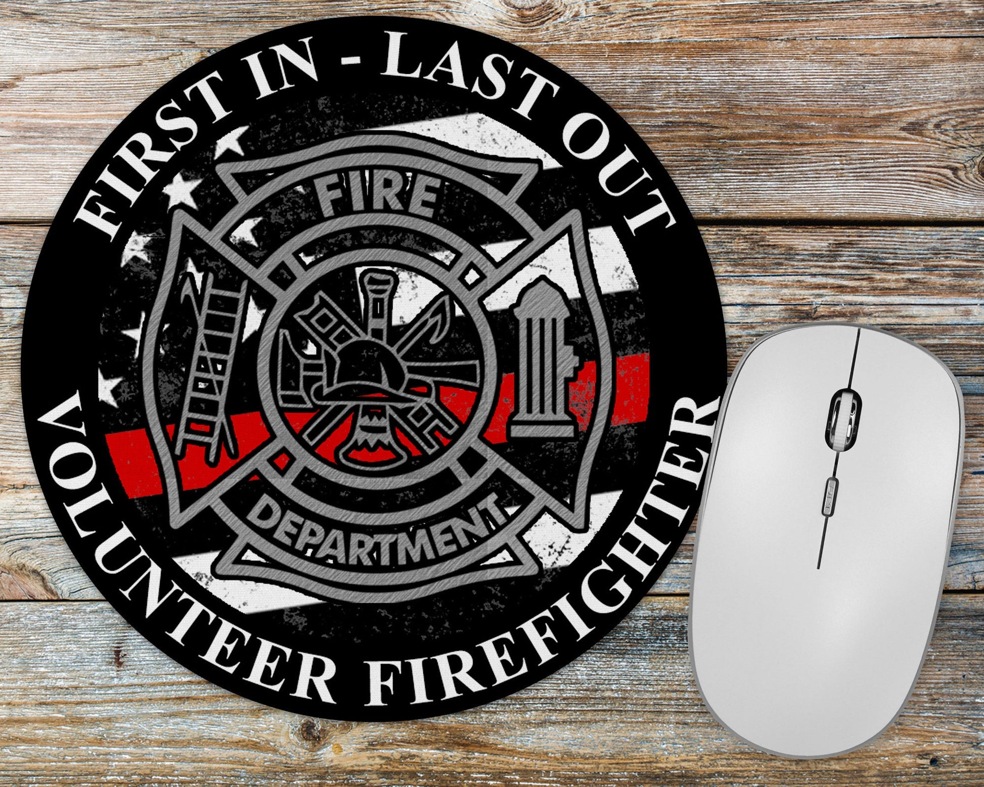 Thin Red Line Maltese Cross Volunteer Firefighter Mousepad